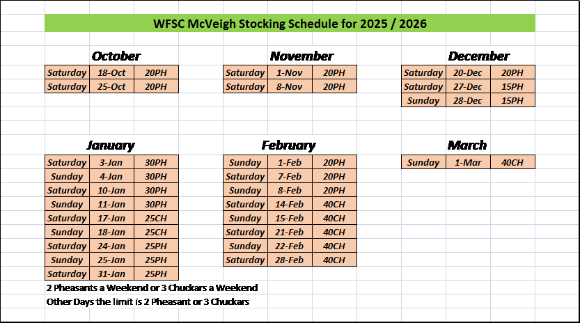 McVeigh Bird Stockings MCVEIGH Property Bird Hunting WOODBURY FIELD & STREAM CLUB, Inc 2025-2026 STOCKING SCHEDULE McVEIGH PROPERTY
